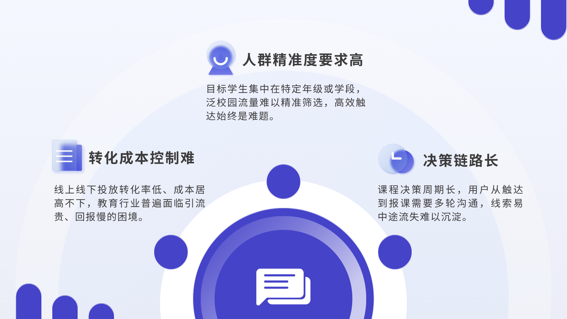 - 线上投放看似曝光千万,却很难精准筛出真正有升学意愿的学生,线索转化更是难上加难;