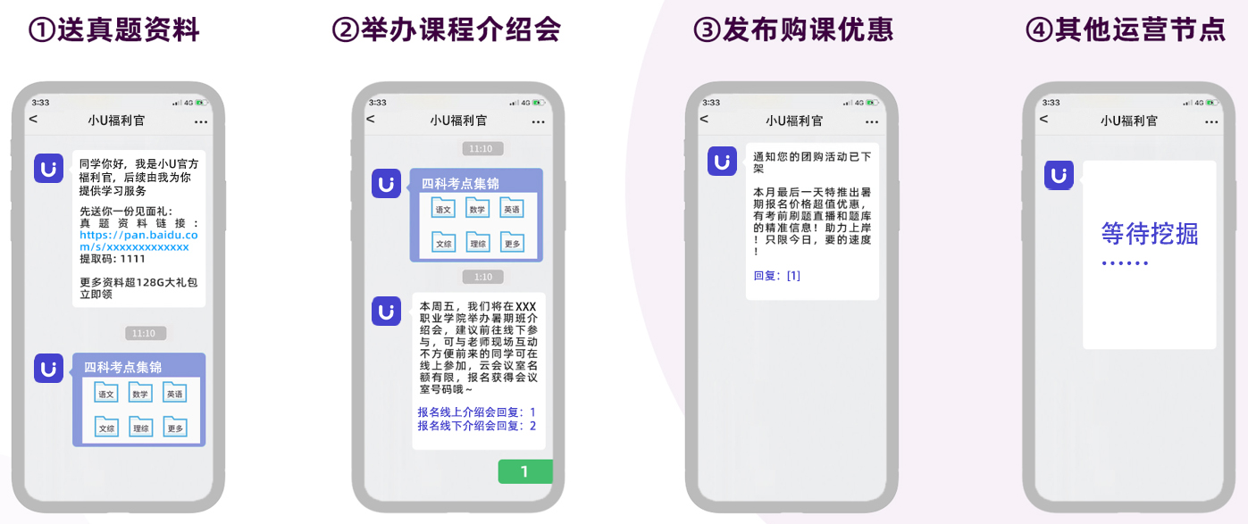 - 而对于“报班”这类高决策产品来说,学生从了解政策到真正报课往往需要数月的时间,稍有疏忽,线索就悄悄流失了。